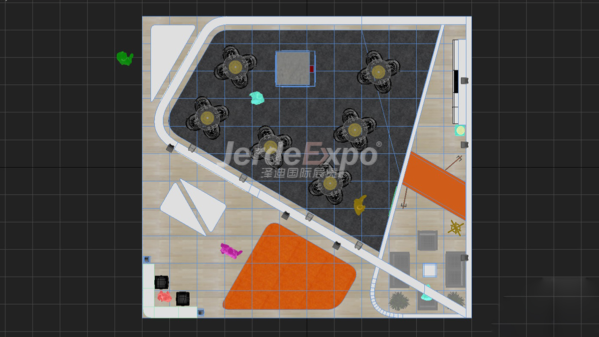 展廳風格:科技工業(yè)風展臺面積:500㎡m2